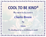 When you have downloaded the certificate simply click on the name Charlie Brown, delete the text, and type the name of the recipient that you want to acknowledge. Click on the name Snoopy, delete, and replace the text with your name or the name of an animal that the person, organisation or animal has helped.